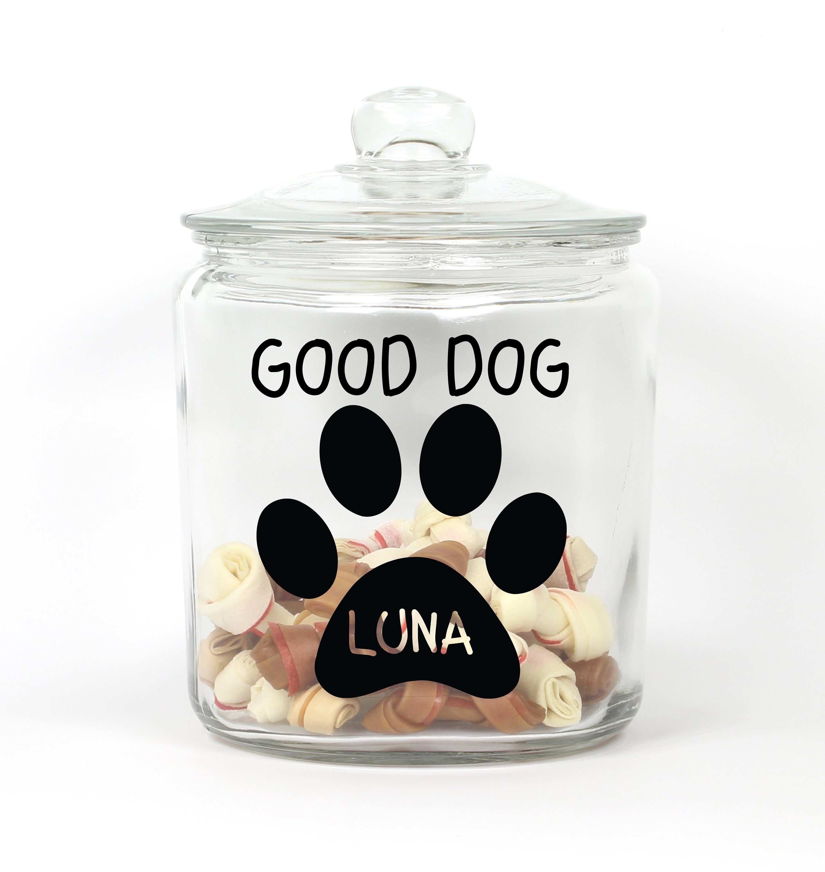 Adorable treat jar to hold your pet's favorite treats. Available in 2 sizes. Hand wash only.