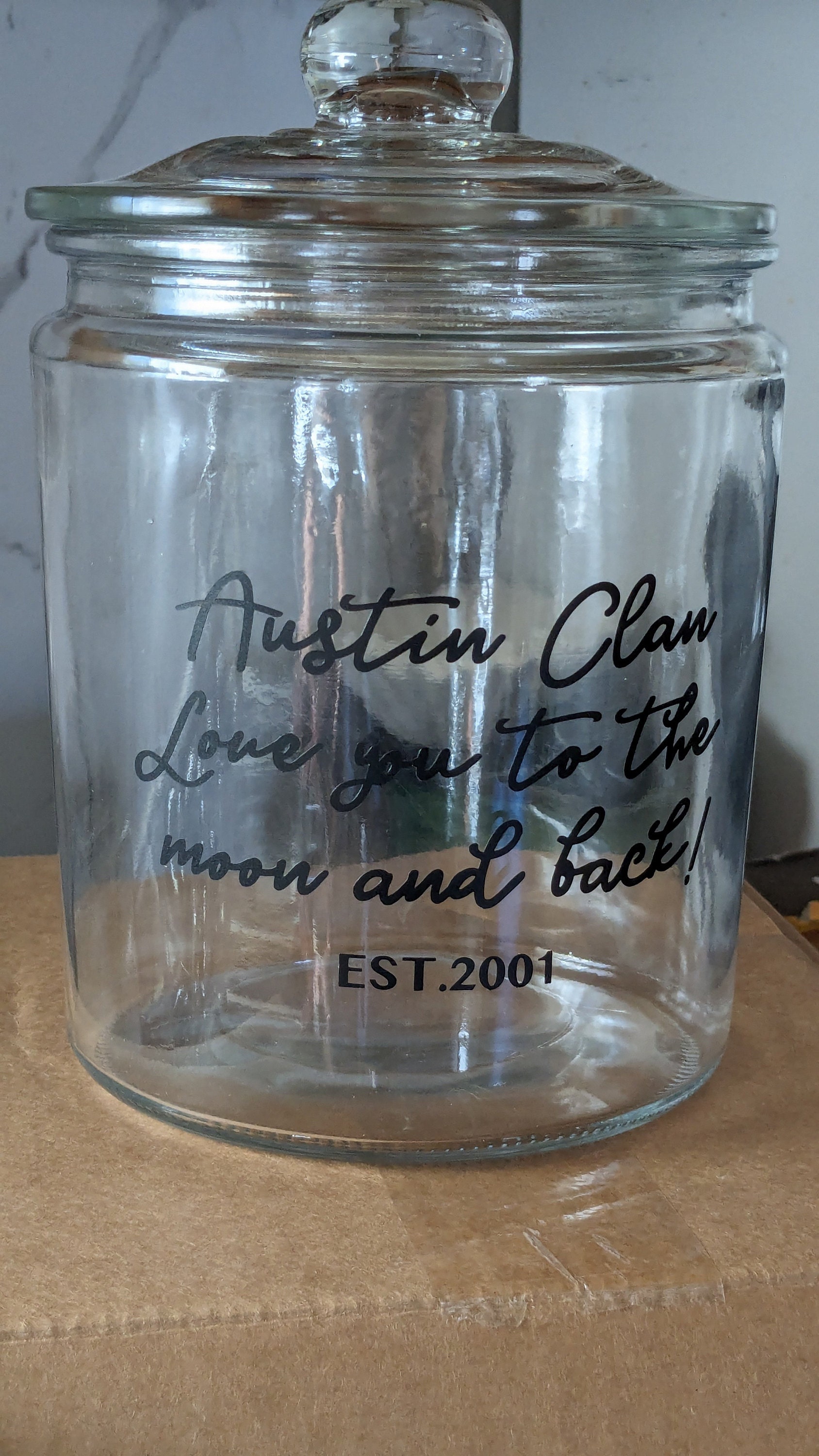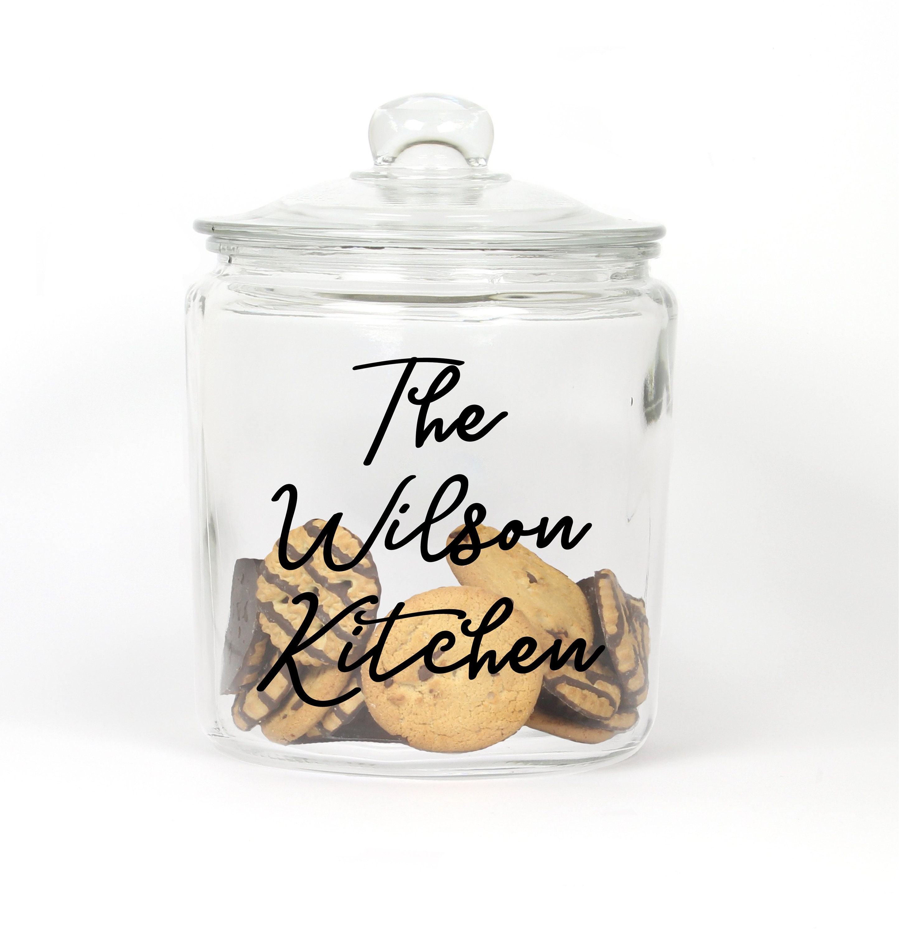 Perfect display for your family's homemade goodies or surprise your favorite family or newlyweds with this great glass cookie jar!