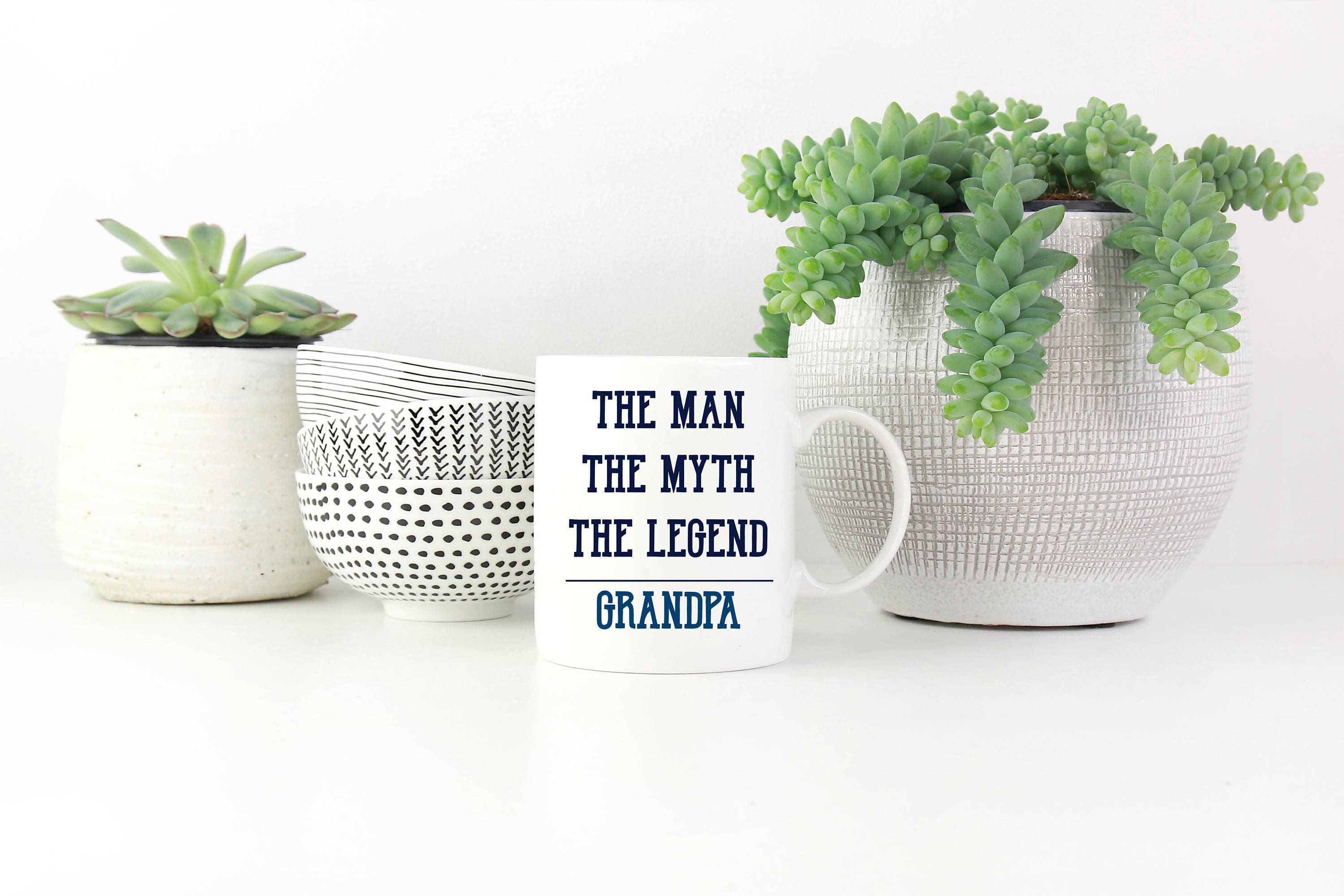 Great mug to give to that special guy in your life. Reads "The Man, The Myth, The Legend". Personalized with Grandpa or any name you like.