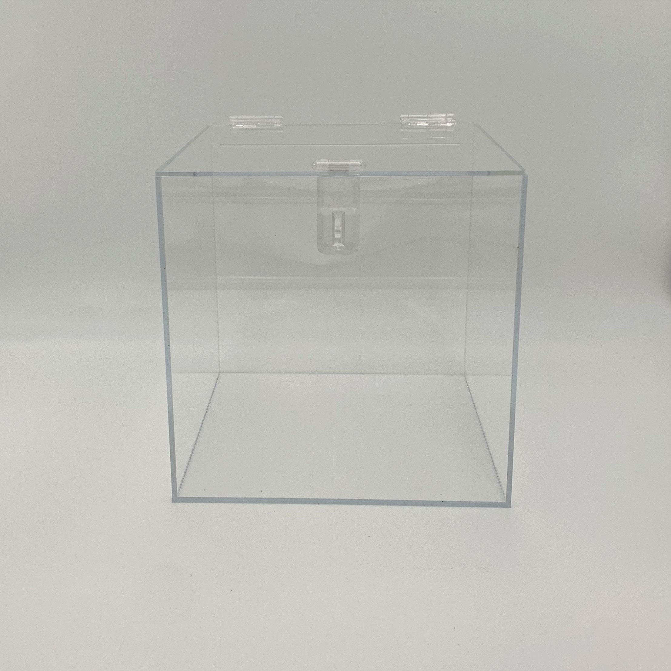 Choose from our solid, metallic or new sparkle colors. We also offer the card box blank with no personalization. Each box is handmade and polished from clear acrylic and features a 7" card slot.