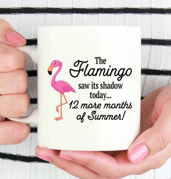 Mug reads: The Flamingo saw its shadow today...12 more months of summer!