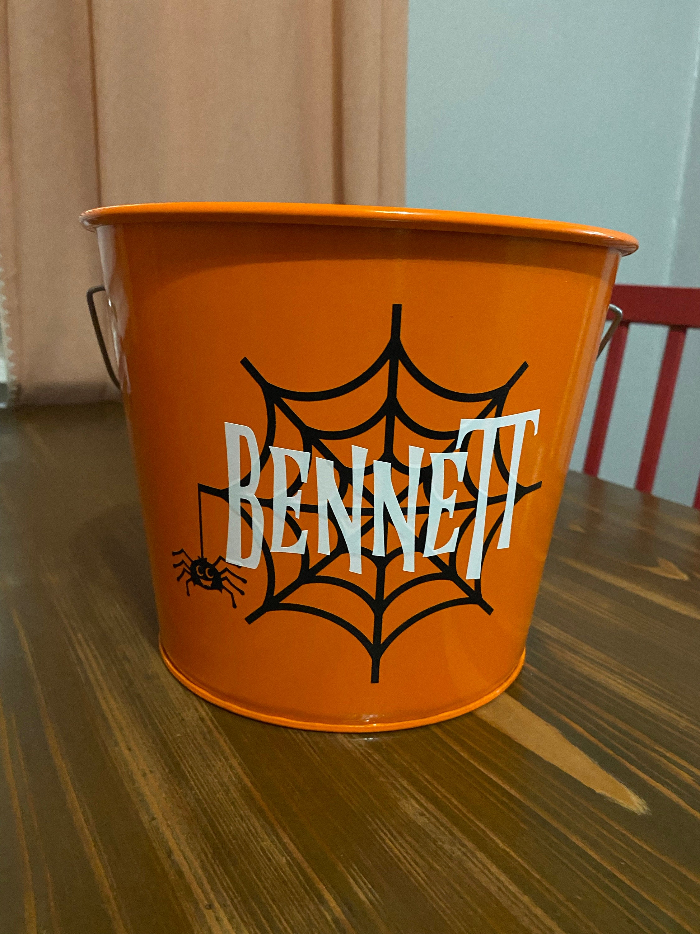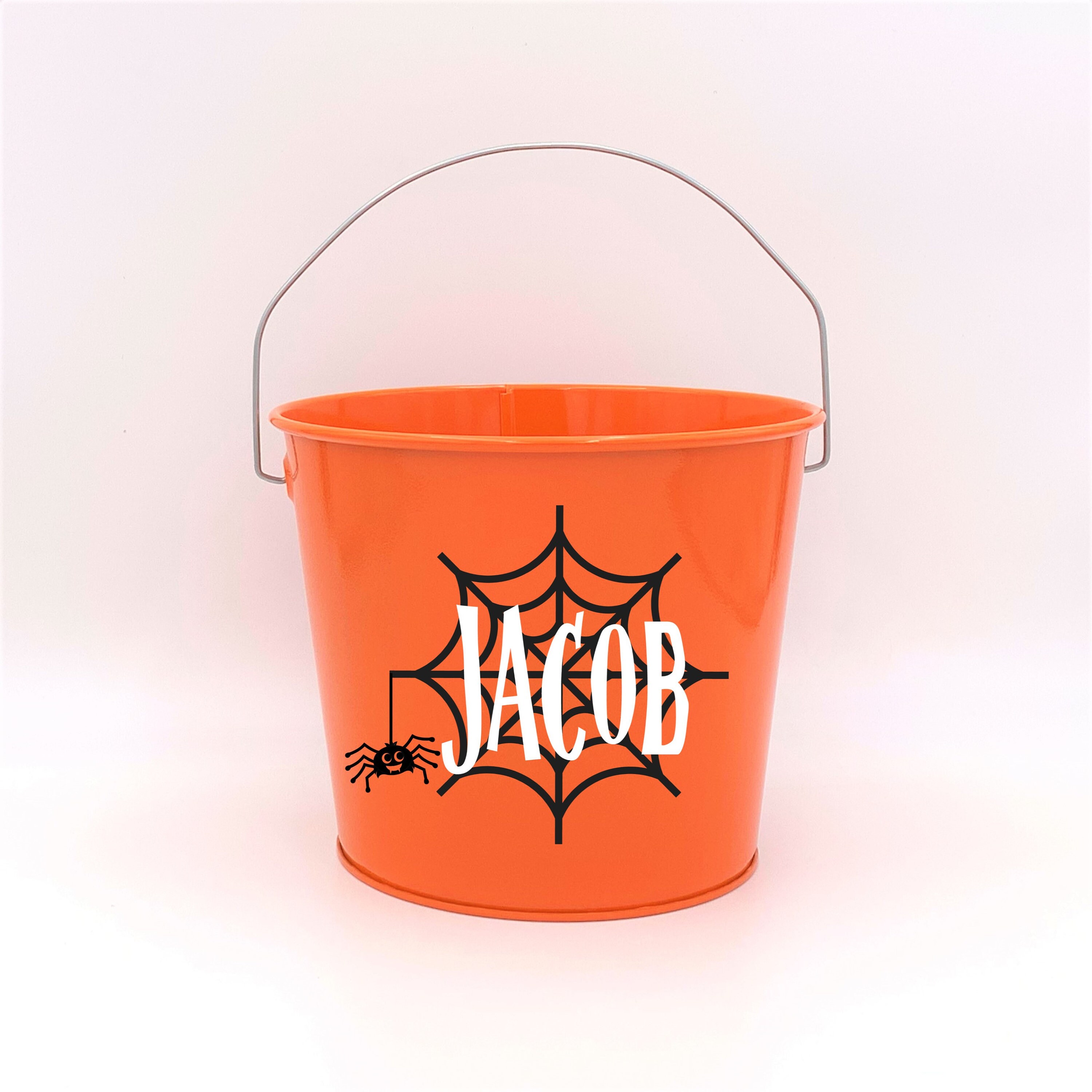 Super cute Halloween pail with any name. It is perfect for Trick or Treating with your child's name or displaying your candy with your last name.