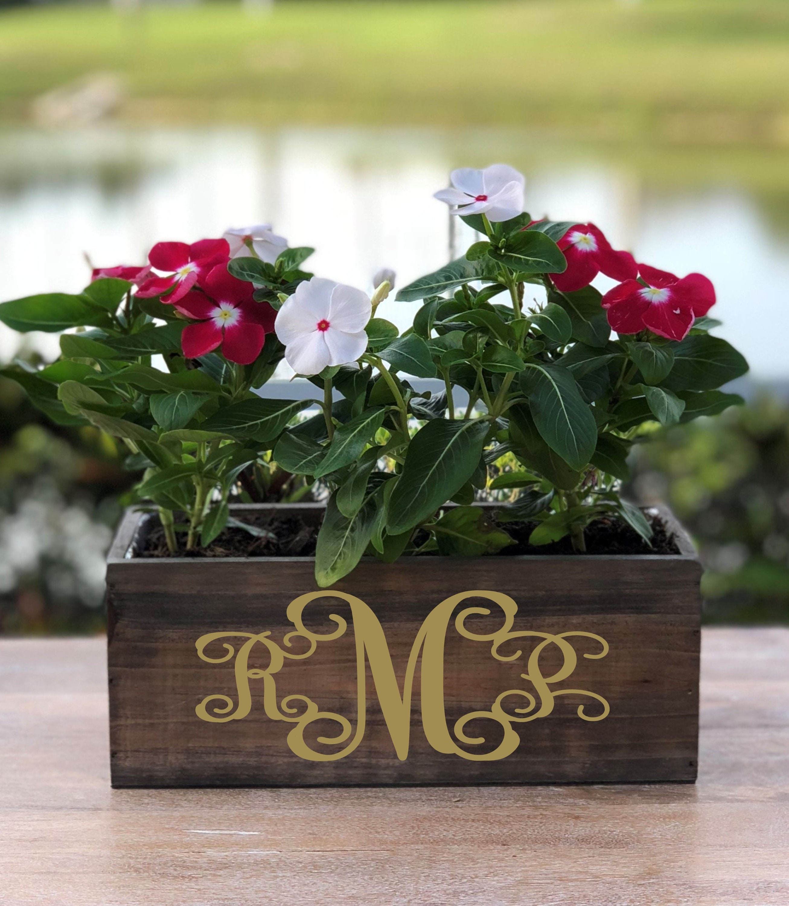 Each planter is personalized with any 3 initials. Enter initials in the exact order you would like. Middle initial will be the large initial (Example shown would be: RMP)