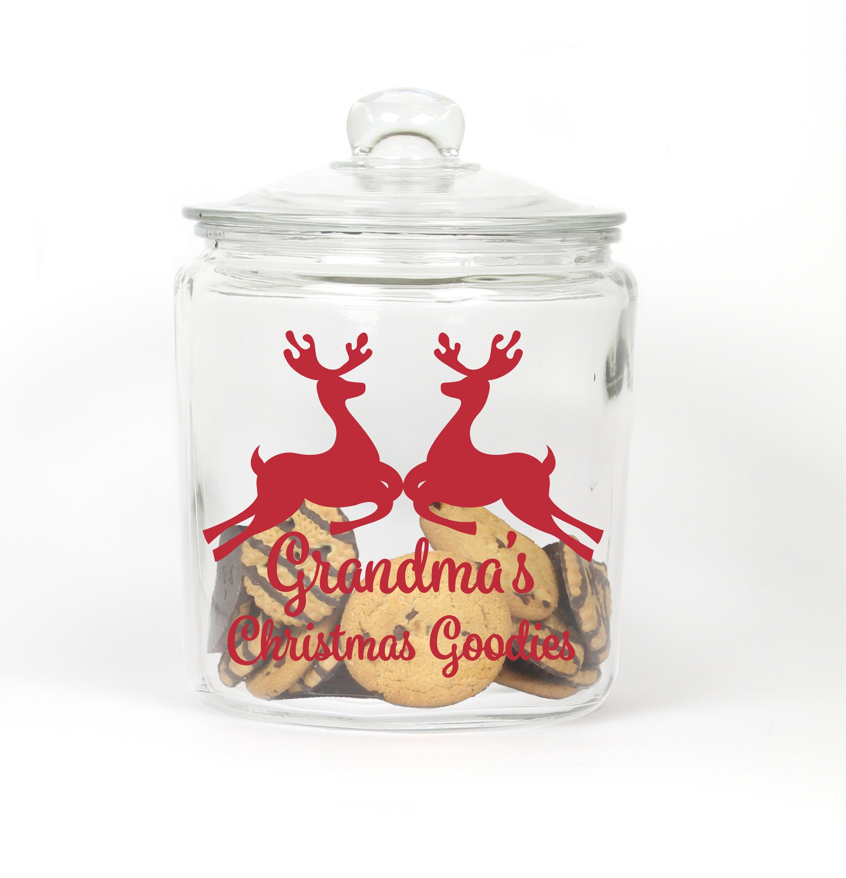 Perfect display for Grandma's homemade Christmas goodies. Use any name and give it to your favorite baker. Our jars are 100% Made and Personalized in the USA!