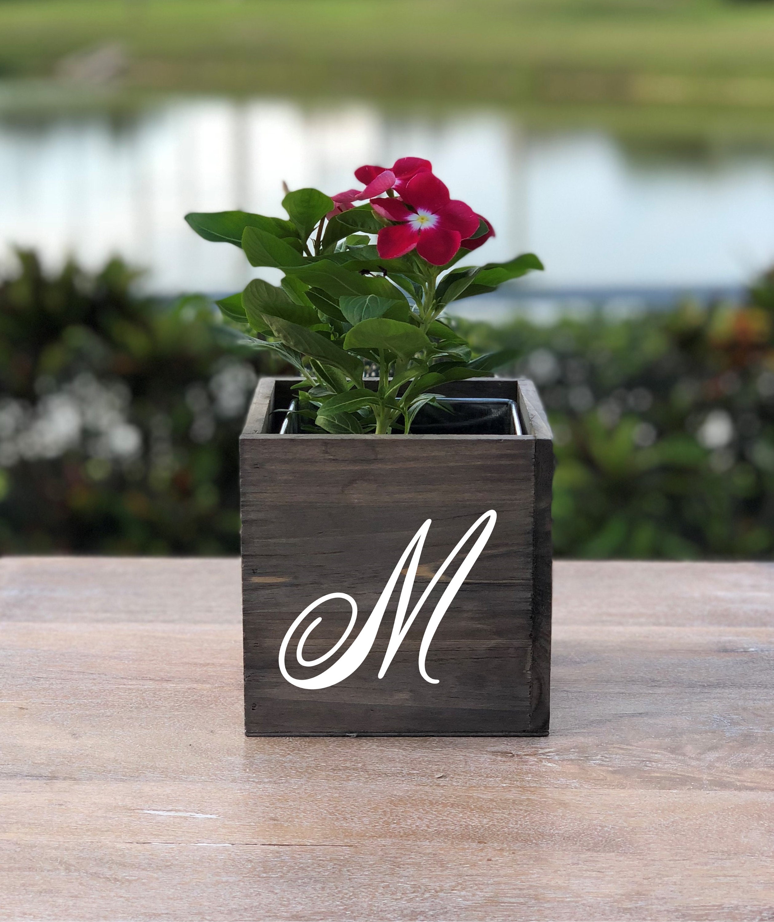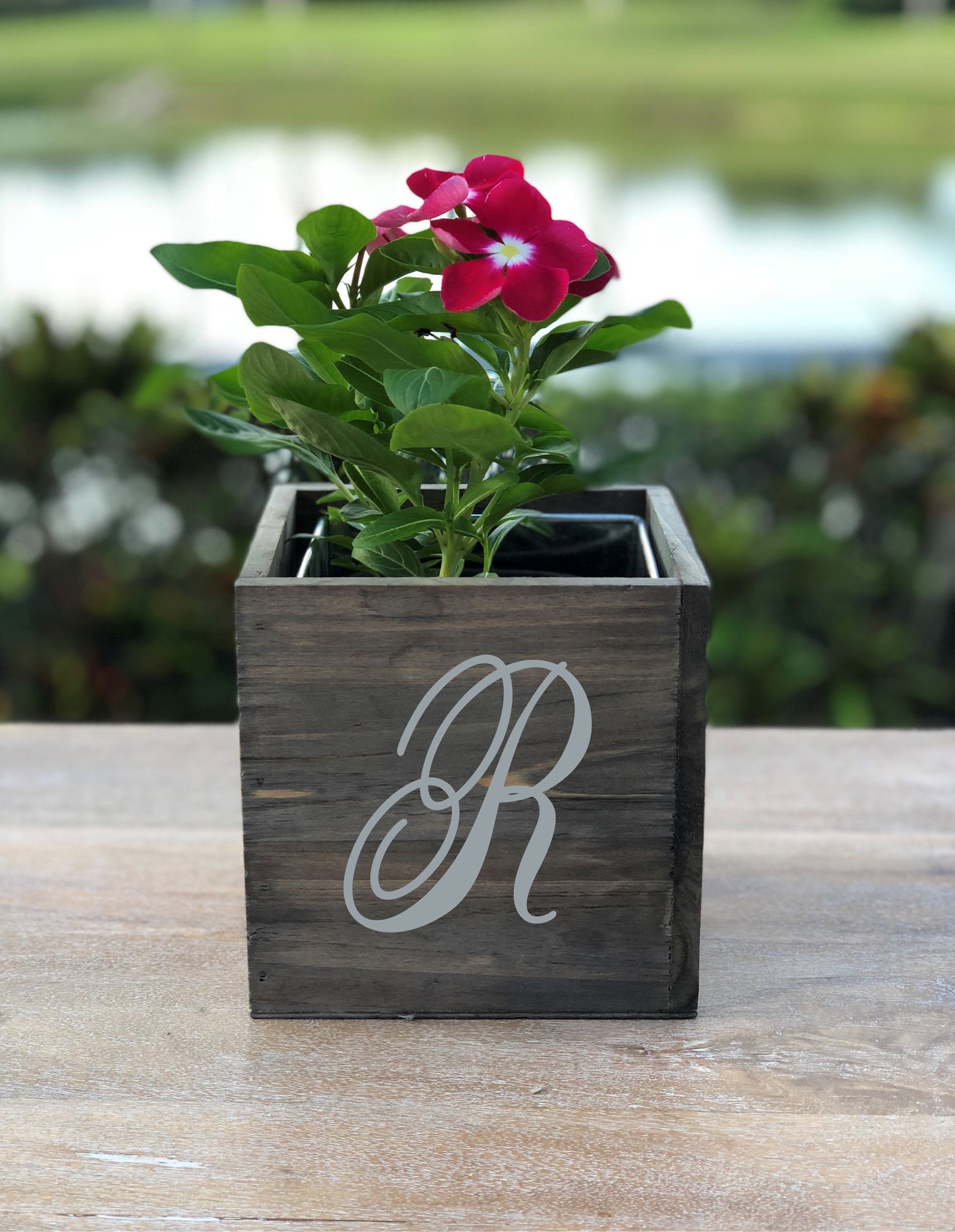 Lovely natural wood planter holder that measures 5"x5"x5" - perfect to hold flower arrangements or a plant! This would make a great gift for yourself, friends or that special teacher. Choose the stained wood as shown, or let us paint it your favorite color.