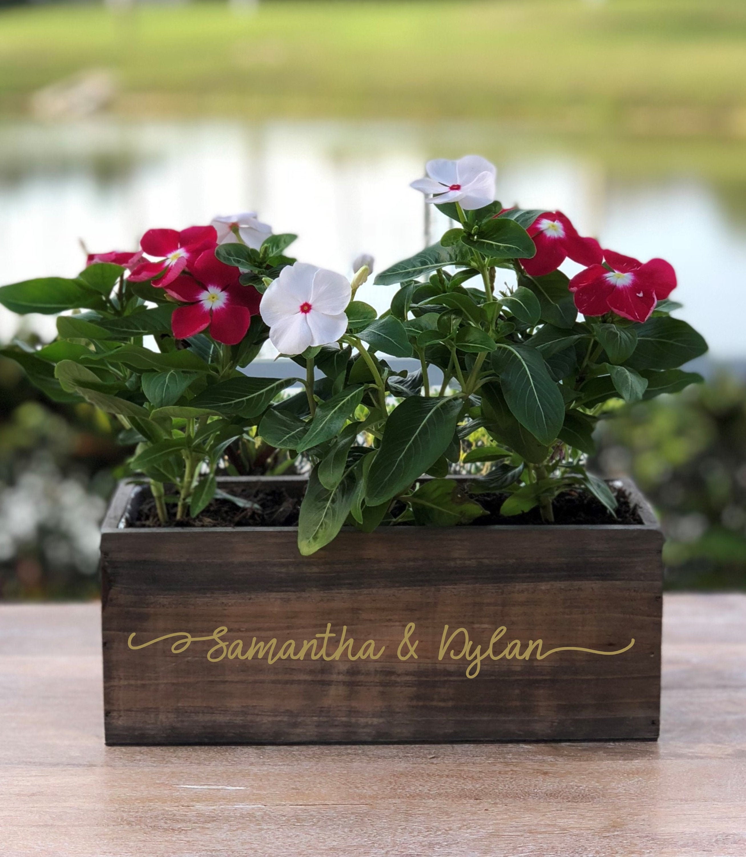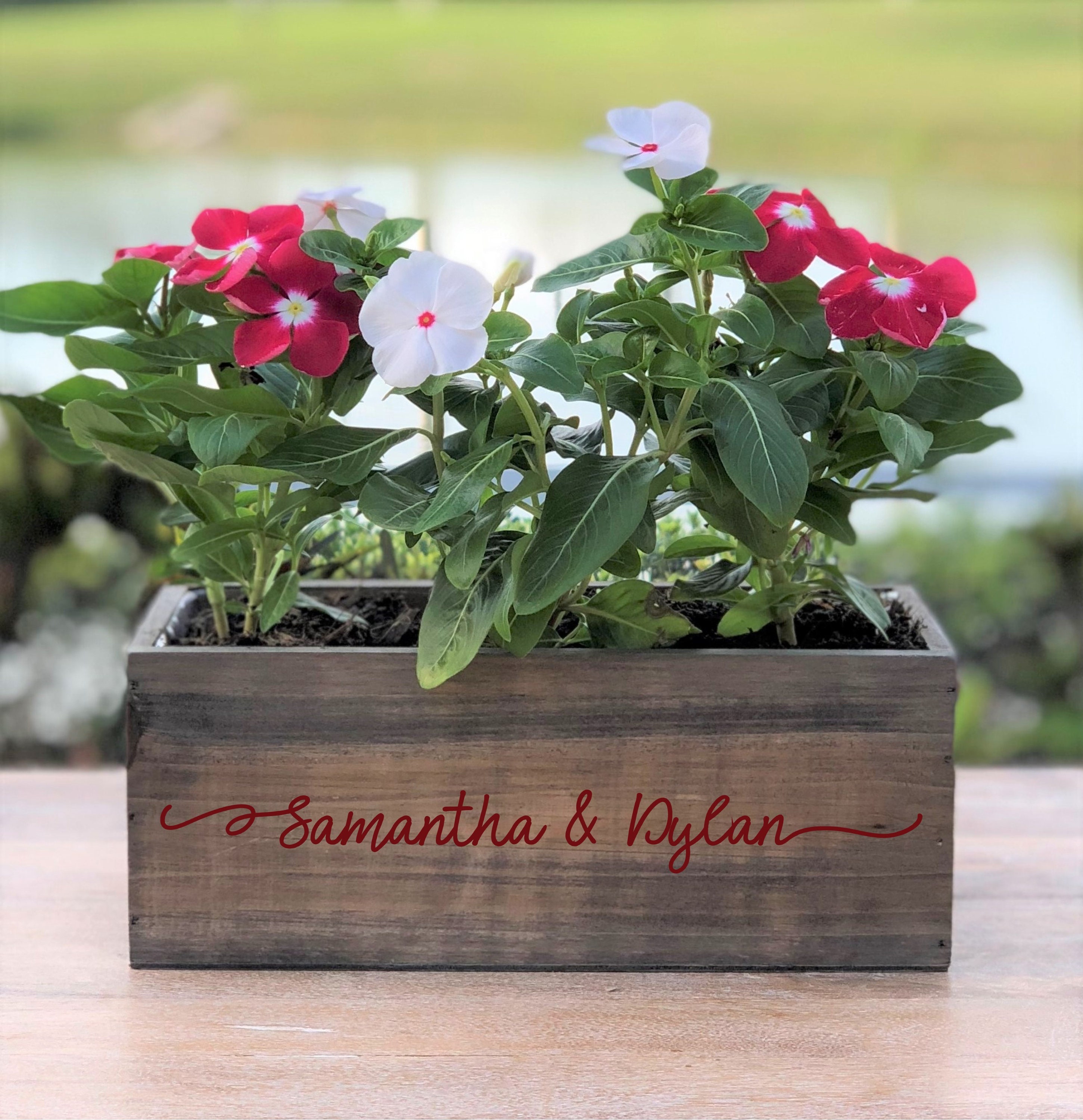Each planter is personalized with any two names or wording of your choice.