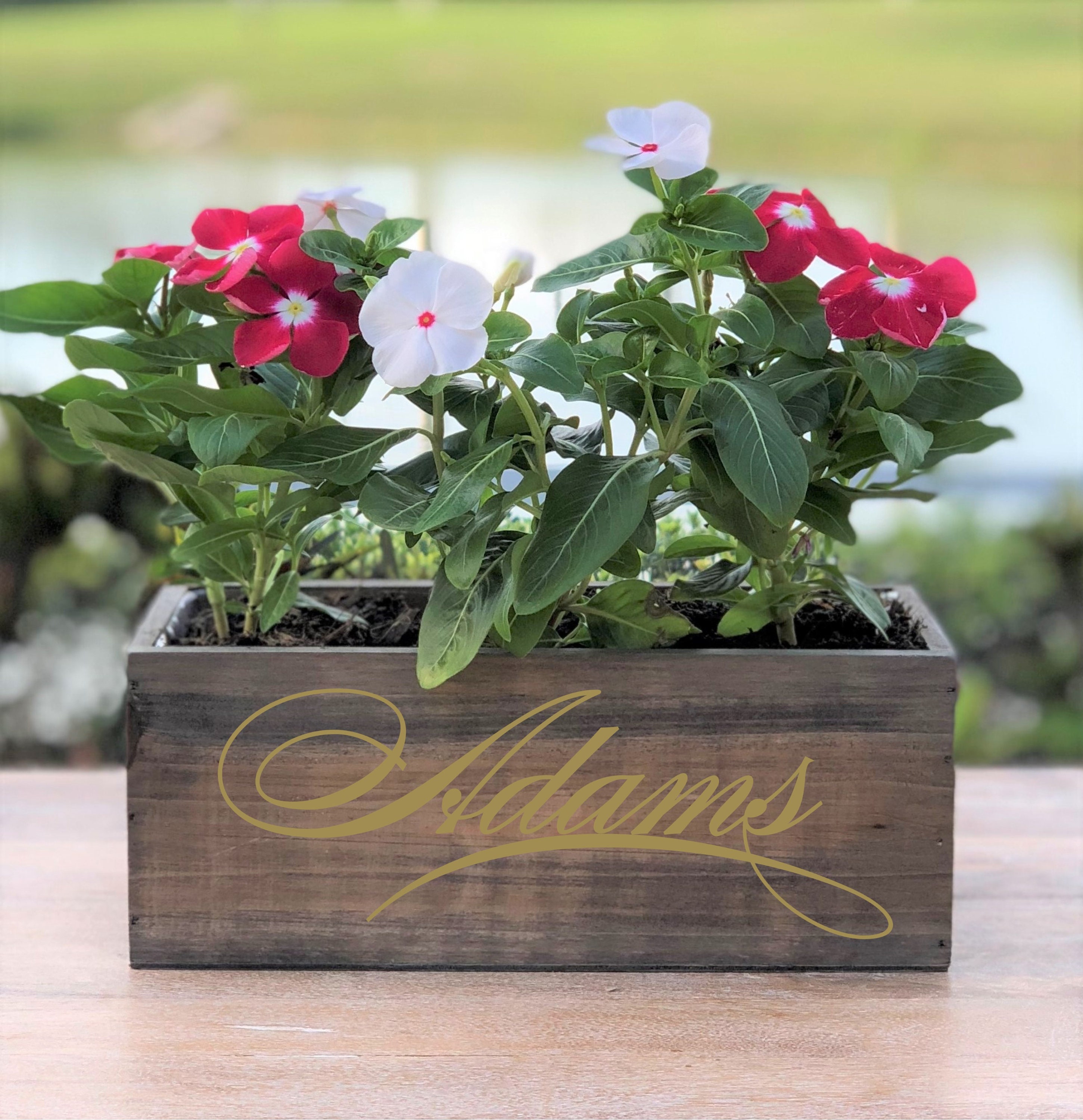 All planter boxes are made using wood, so colors, shades, & wood grain may vary. Wood box planters and removable liners do not come with drain holes. Planters are not guaranteed to be watertight. Flowers are not included.