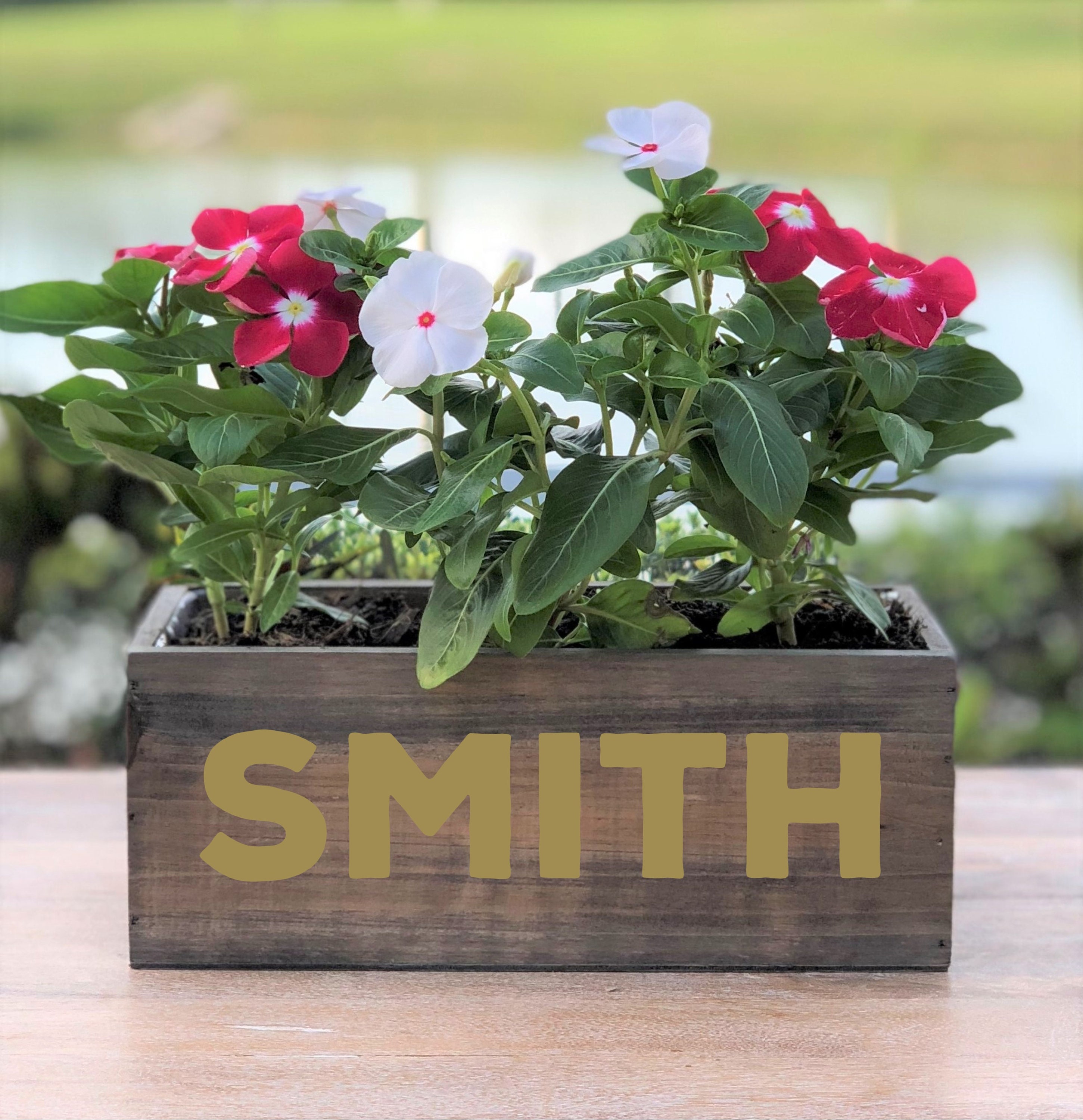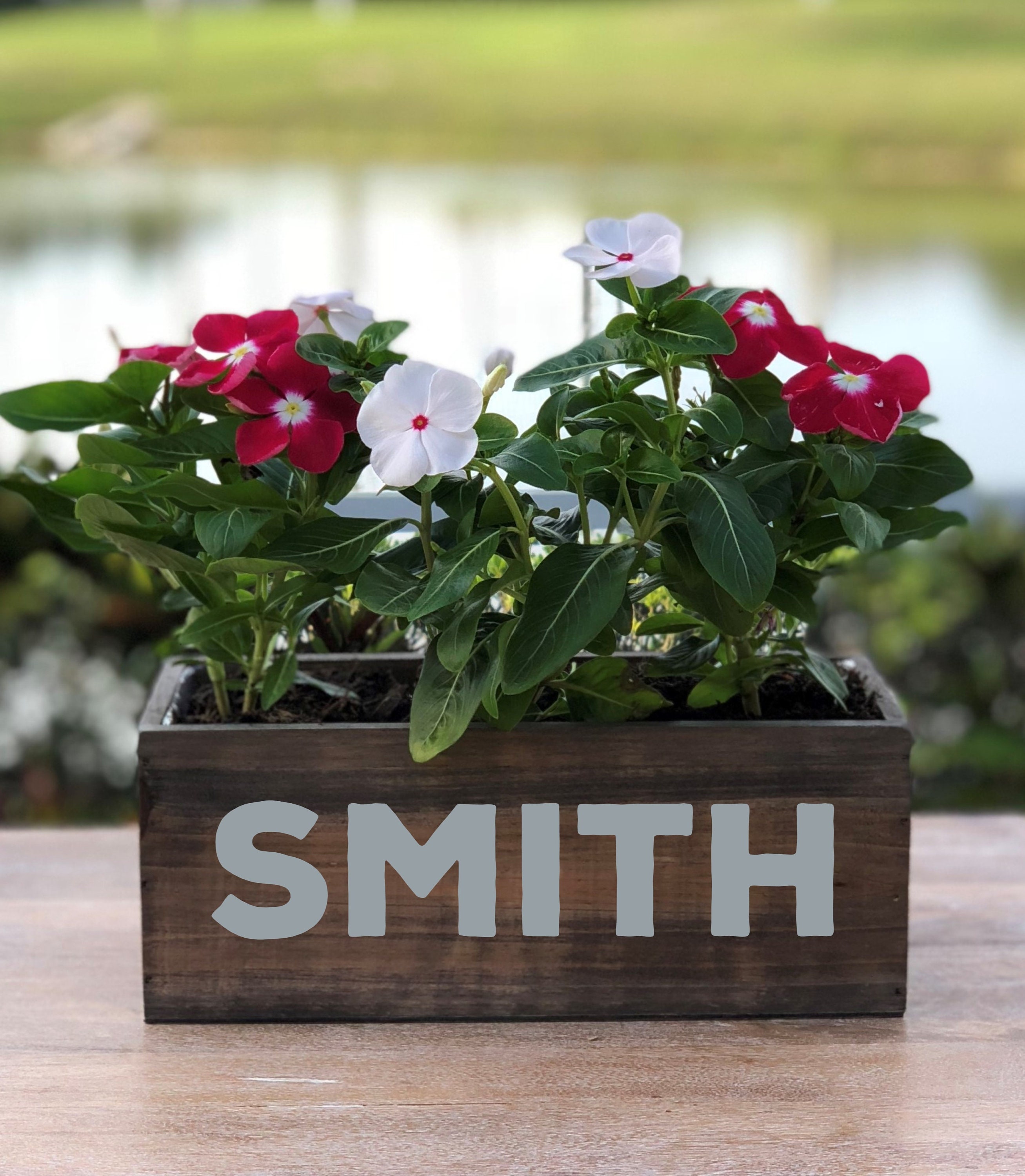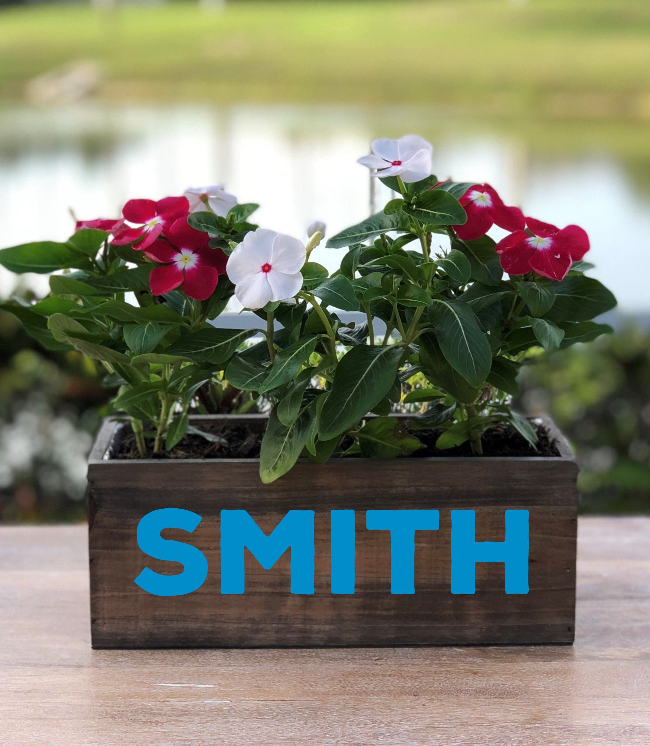 All planter boxes are made using wood, so colors, shades, & wood grain may vary. Wood box planters and removable liners do not come with drain holes. Planters are not guaranteed to be watertight. Flowers are not included.