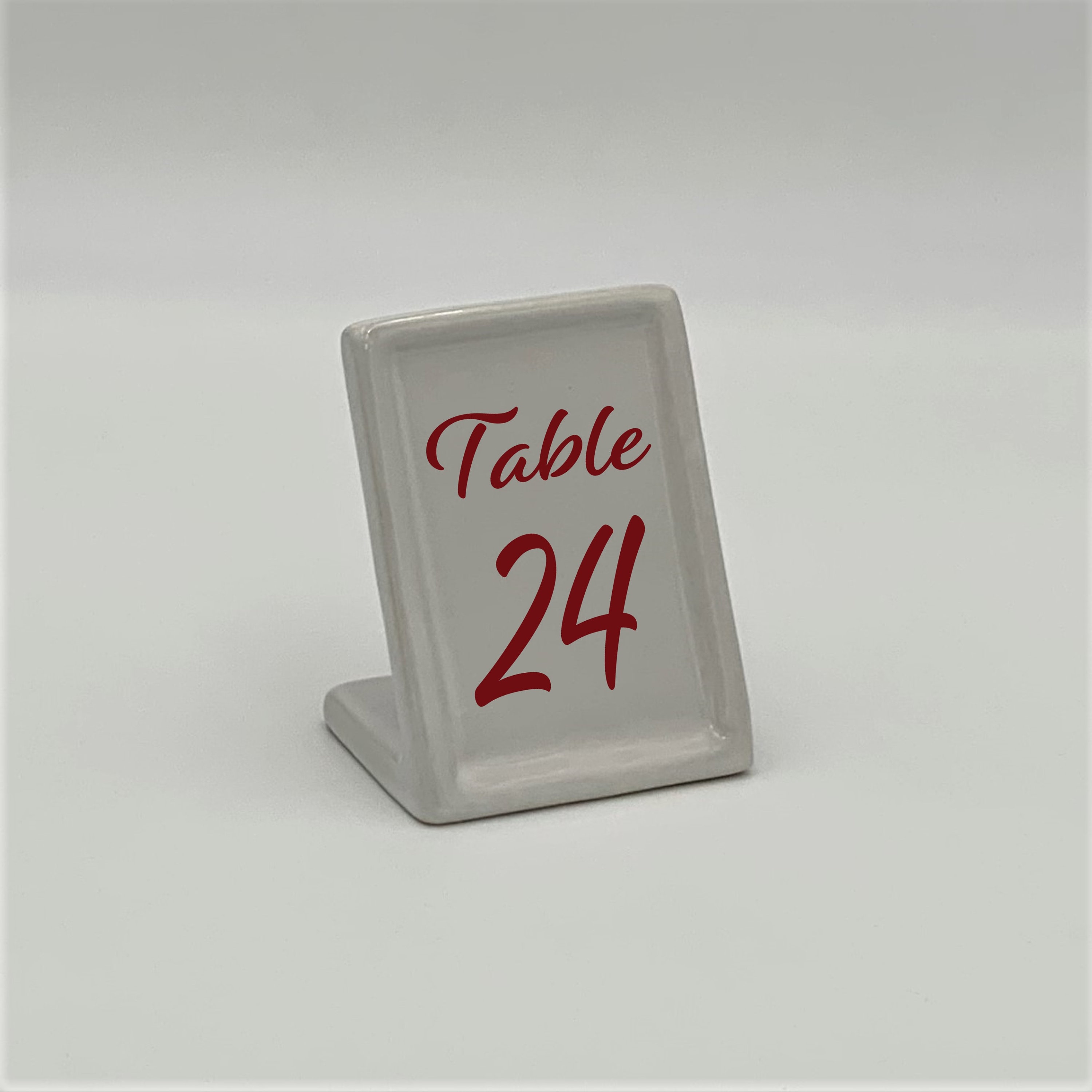 Our beautiful white ceramic table numbers would make the perfect decoration for your wedding to invite your guests to the correct table! This elegant table number measures 3" wide x 4" tall. It is 2" deep with the base.