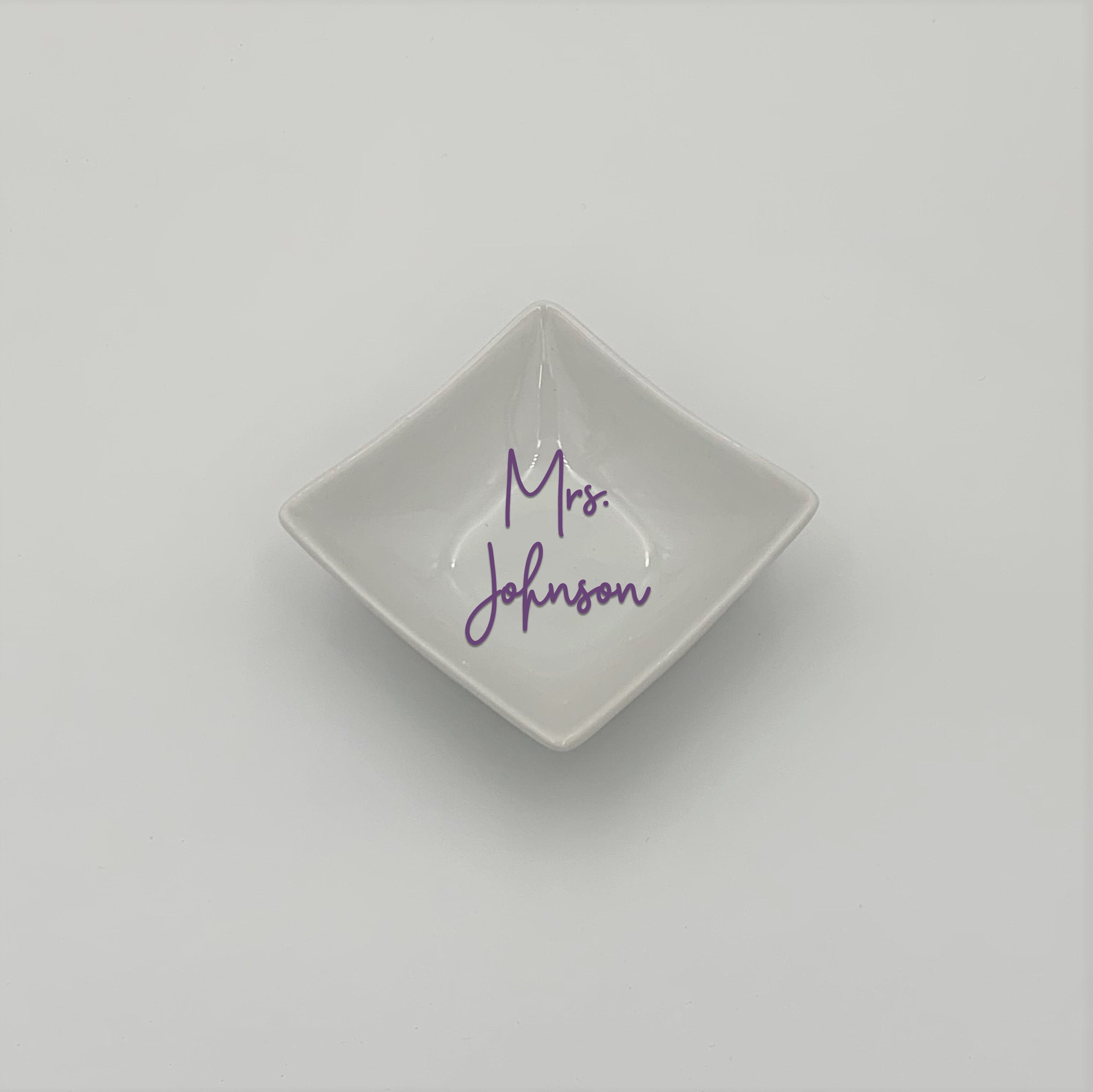 Beautiful porcelain ring dish makes a perfect gift for the Bride to be. It will keep your ring safe when its not on your finger. You can place this on your dresser, nightstand or by the kitchen sink to always keep your bling safe and shiny! Use Mrs. Mr. Dr. or whatever title suits you!