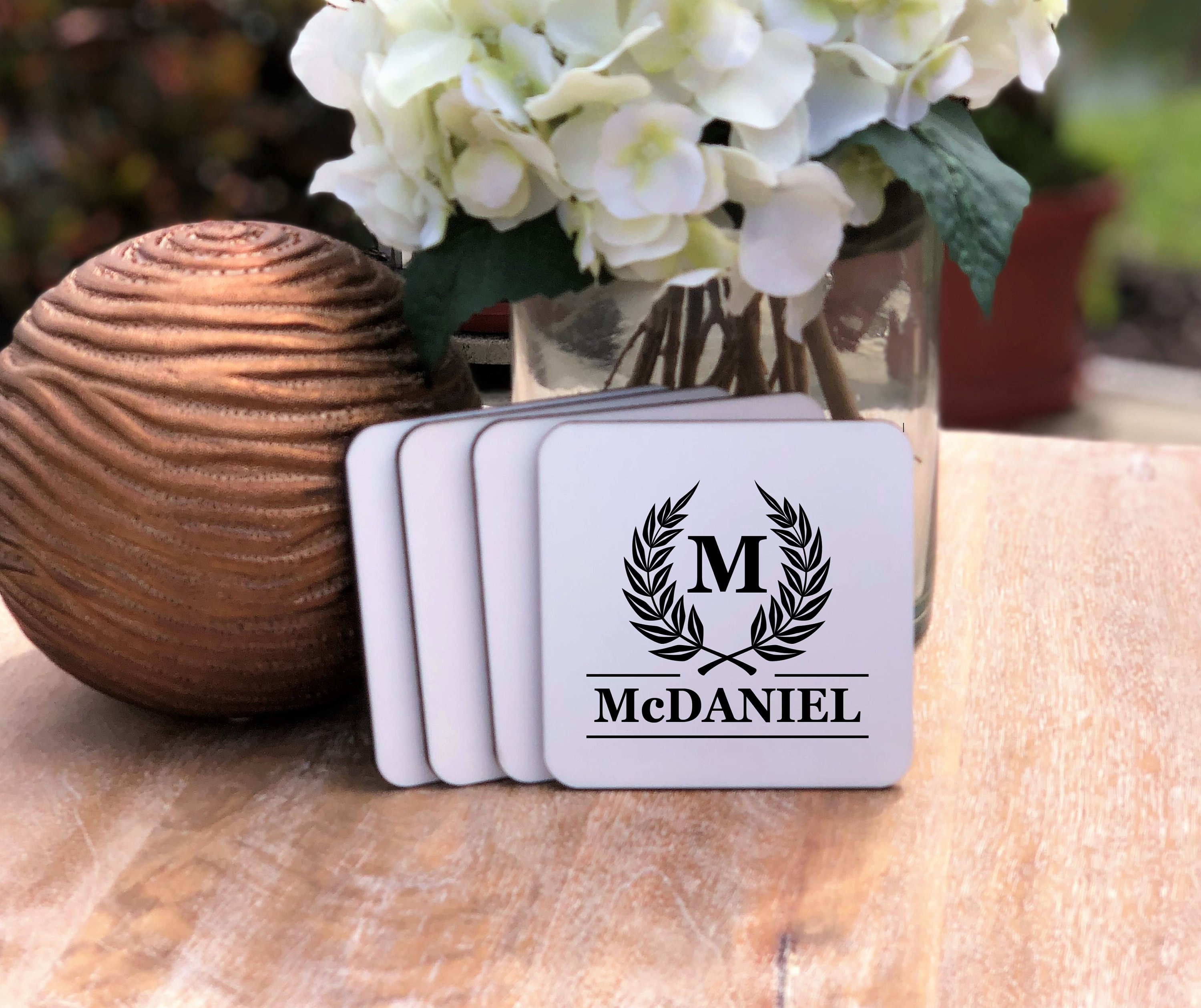 Personalized Crest Coasters Set ~ Cork Back ~ Gift for Couple ~ Est Year ~ Personalized Coasters ~ Personalized Gift ~ Christmas Gift