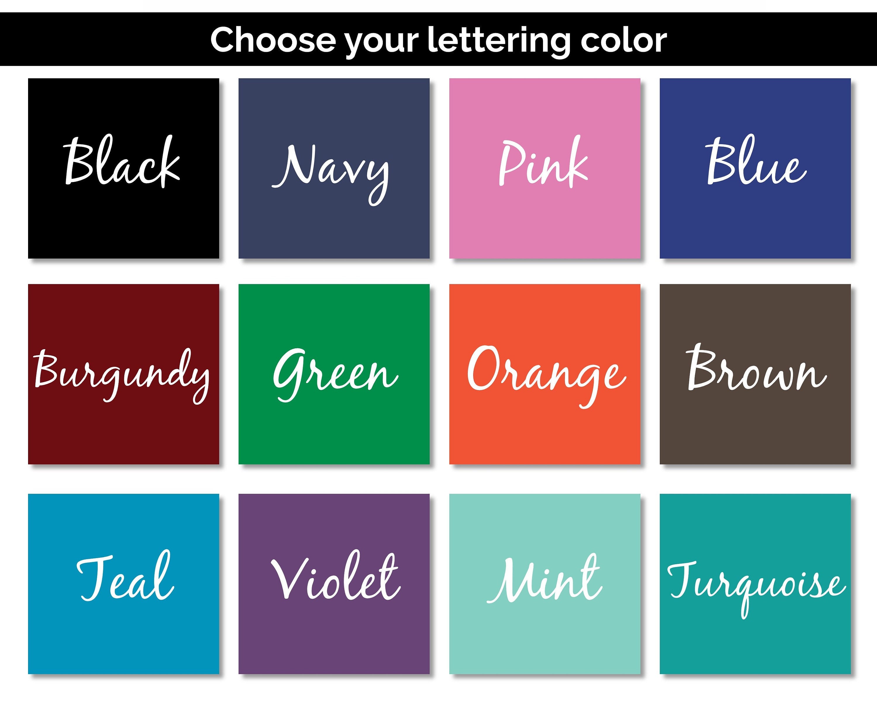 Choose 1 or make it a set. Choose black lettering like the photo or choose a different lettering color.