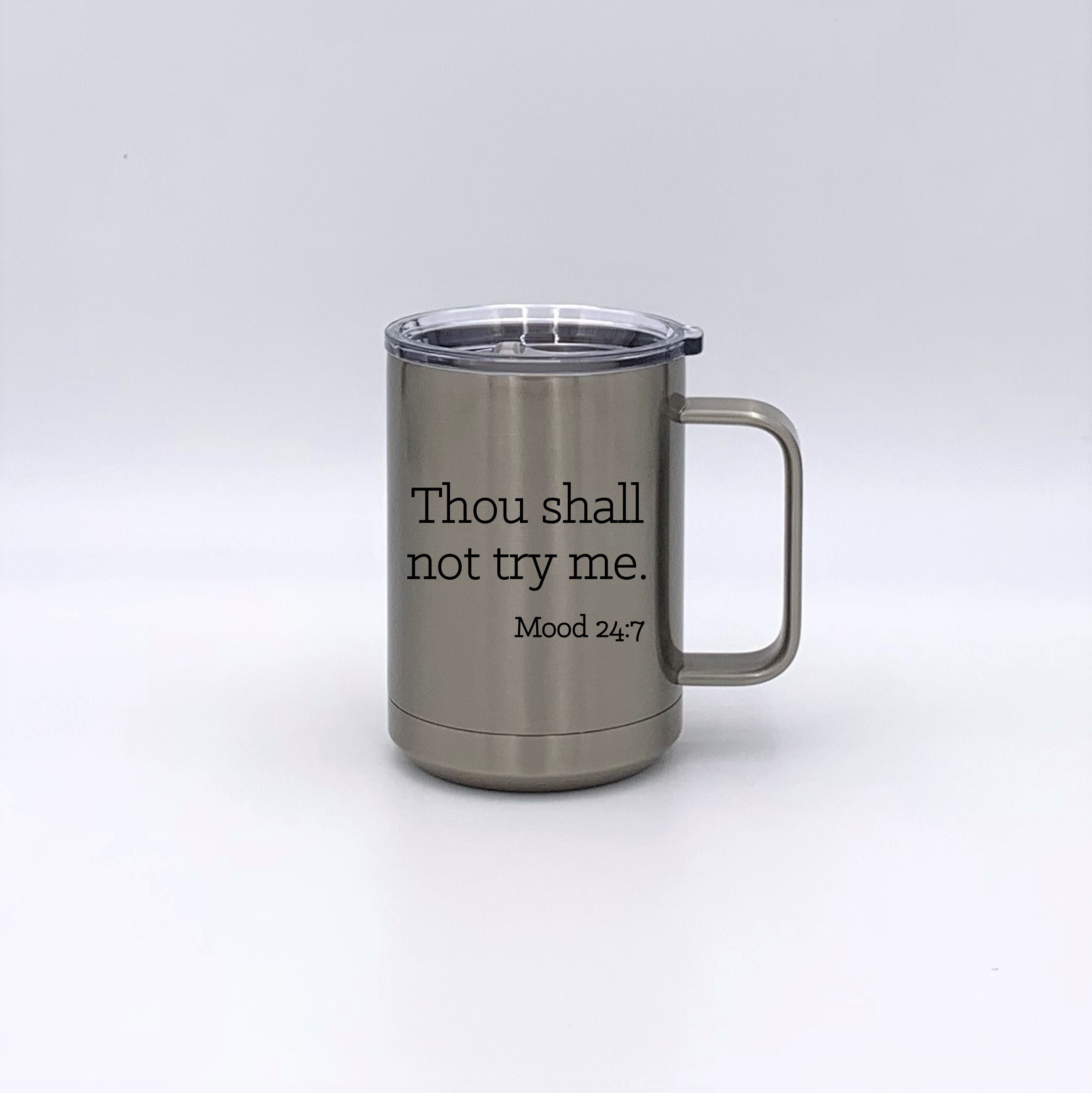Mug is made from 18/8 gauge stainless steel and features double-wall vacuum insulation with a clear slider lid. It is 2X heat & cold resistant compared to a normal travel mug and is lead free. Printed with the same copy on both sides. Our insulated mugs are dyed...no vinyl used here. The image is permanent.