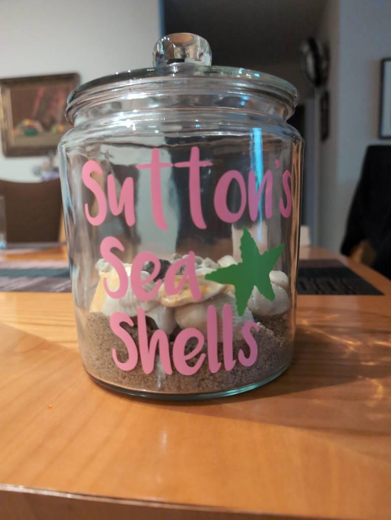 Beautiful jar for my seashells. Lettering looks great!