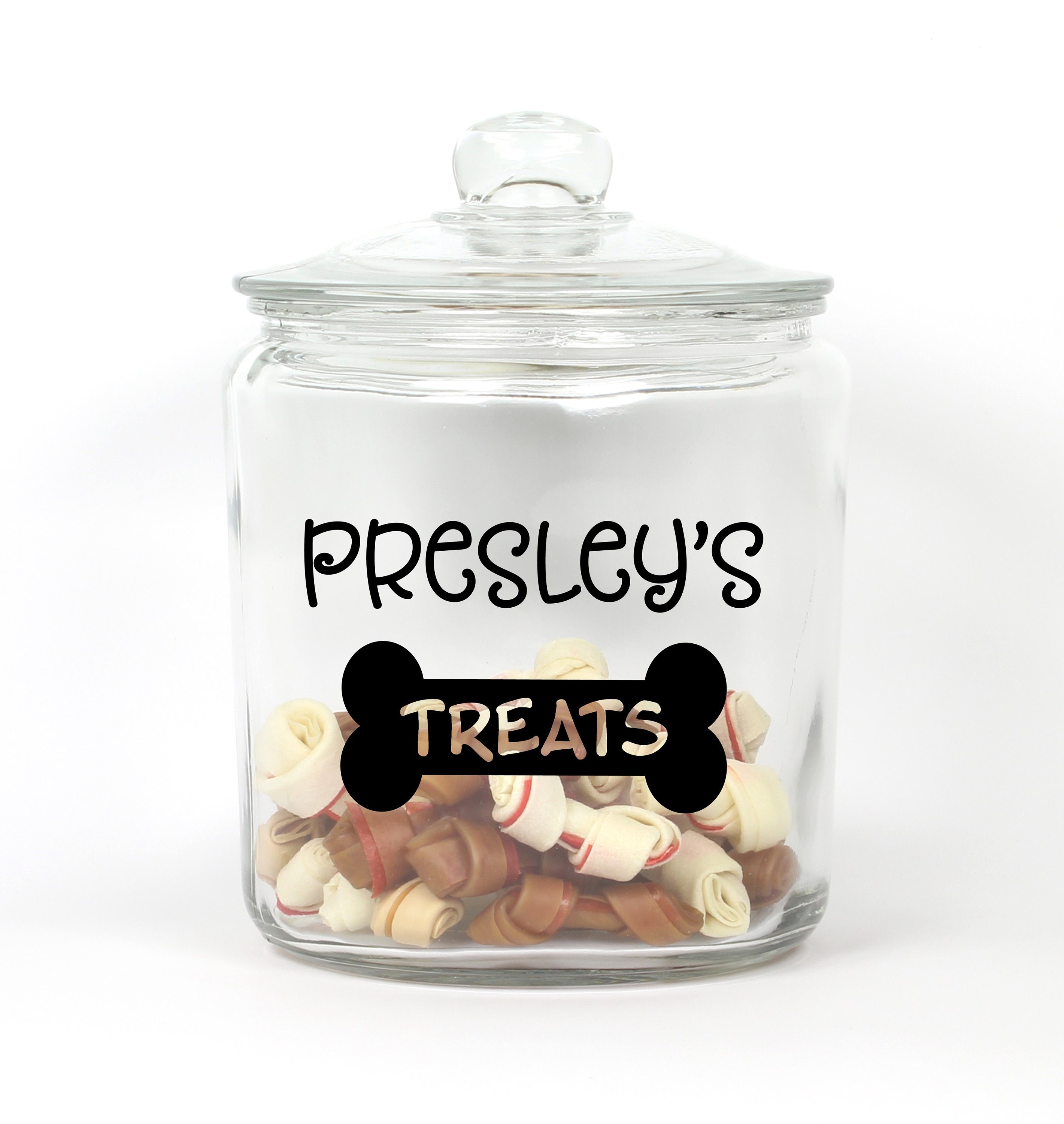 Adorable treat jar to hold your pet's favorite treats. Available in 2 sizes.