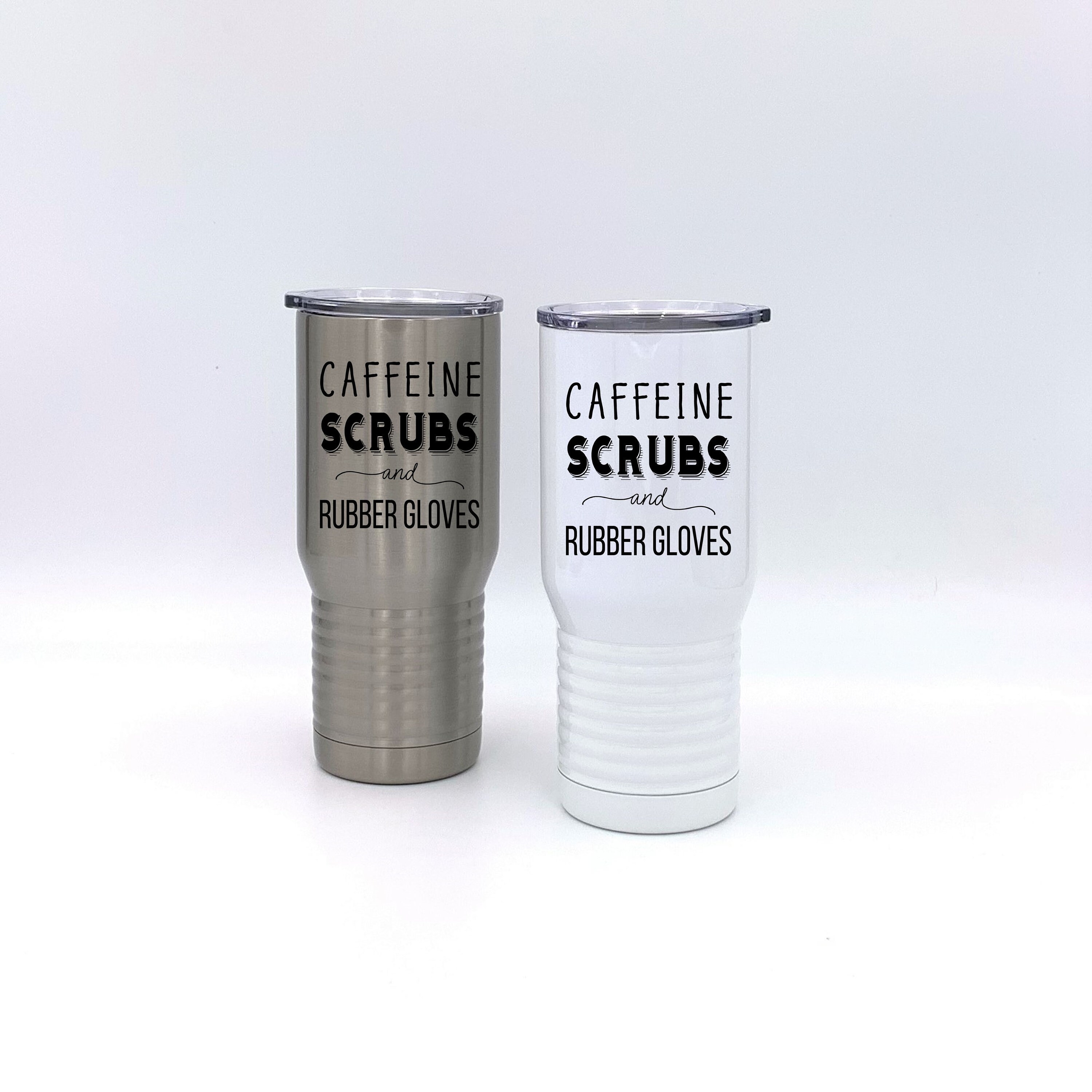 Tumbler is made from 18/8 gauge stainless steel and features double-wall vacuum insulation with a clear lid. This mug has a narrower bottom to fit most standard cup holders. It is 2X heat & cold resistant compared to a normal travel mug and is lead free. Printed on 1 side. Our tumblers are dyed...no vinyl used here. The image is permanent.